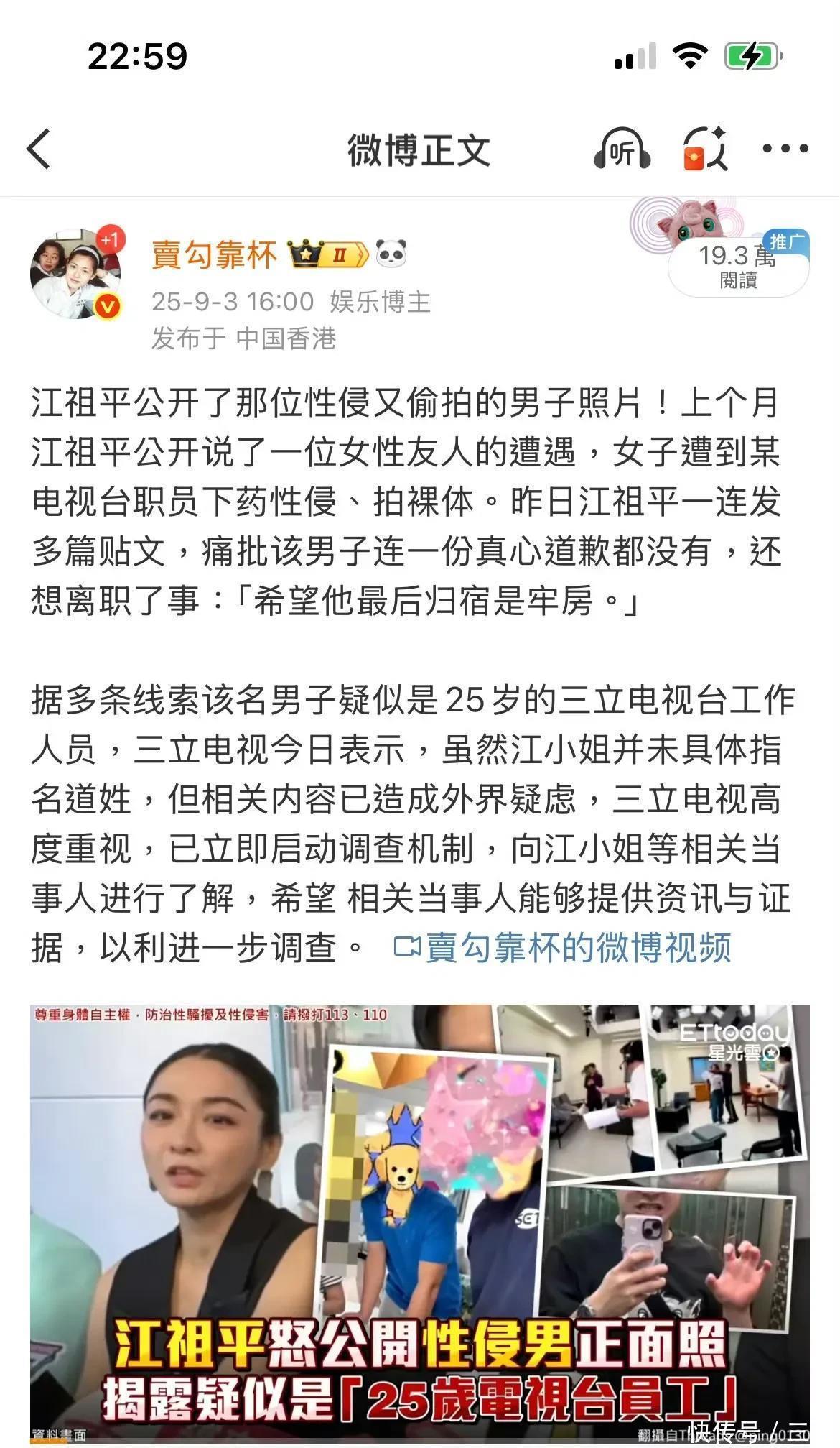 性侵案始末今年8月,江祖平先是在网上替“女性朋友”发声,文中愤怒控诉遭电视台关系人士下药性侵偷拍,要求对方“真诚站出来的道歉”,后面甚至爆出对方照片!