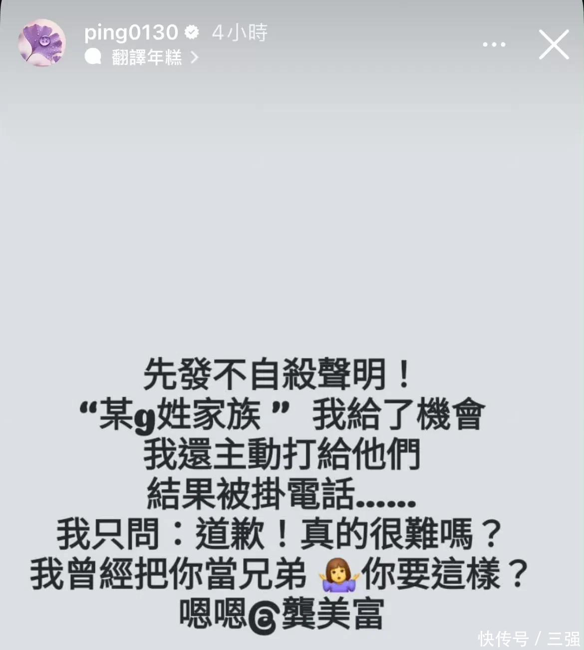 据江祖平的爆料,涉嫌者竟是三立副总之子龚益霆,是比她小22岁的前男友。不过让网友气愤的是,男方不仅否认“性侵”指控,还声称两人曾是情侣这是合法发生关系。